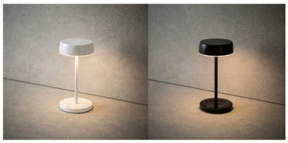 「コードレスLEDテーブルランプ」は、充電式で場所を選ばず、停電時にも使⽤が可能。電源ボタン⻑押しで連続調光が可能で、台座部のくぼみには⼩物が置ける。カラーはホワイト、ブラックの2色で価格は2990円。