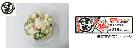 おかずにもおつまみにもピッタリな丸カップに入ったサラダ惣菜「ミニデリ」から、各地域で人気の「ポテトサラダ」を期間限定で内容量20%増量。増量期間は5月7日(火)~5月13日(月)まで。価格は関東・東北・近畿・四国では218円、東海では188円、九州では198円。
