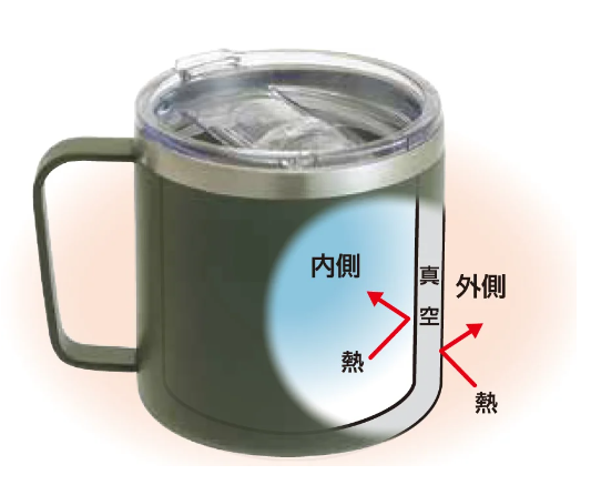 商品は真空二重構造で空気の層を作り、外気の熱を遮断。内部の熱も逃がさない構造となっている。保冷効力は12℃以下(3時間)、保温効力は50℃以上(3時間)。冷たい飲み物だけでなく、温かい飲み物の温度も持続する。
