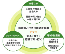 「ふるさとプロジェクト」では、顧客は地域の特別な商品との“ワクワクする出会い”を、日常の買物で楽しむことができる。また、地域の生産者は商品へのこだわりや想いを発信する機会を得られ、グリーンビーンズは顧客と生産者をつなぐことで地域に貢献する“三方よし”の取り組みを行う。「ふるさとプロジェクト」の第1弾として、5月22(水)~6月4日(火)の期間、日本有数の農産県である「熊本」の約50品目を提供する。