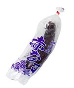 皮が赤っぽい紫色の品種名「ひごむらさき」。肉厚の果肉は油との相性が良く、加熱することでトロッとした食感になる。炒めものや煮込み加熱料理におすすめ。 1本で298円。