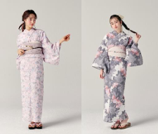 ゆかた、結び帯、下駄の3点セットで、トータルコーディネートが簡単にできる。接触冷感機能が付いている。種類は 15種類、サイズはⅯ・L、価格は1万780円。