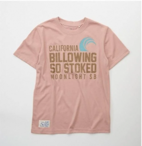 夏らしいサーフテイストのロゴ使いがポイント。大人でも人気の「くすみピンク」は、コーディネートにも取り入れやすく、一枚でも様になるTシャツ。カラーはキナリ・ピンク・イエロー・サックス、サイズは 130cm・140cm・150cm・160cm、価格は1078円。