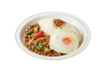 タイ政府公認の人気タイ料理店「新宿バンタイ」監修。豚肉などの具材をにんにく、オイスターソース、ナンプラー、バジル、唐辛子と一緒に炒め、肉の香ばしい風味とバジルの爽やかな香りが楽しめるガパオライス。価格は554円。6月11日(火)から発売開始。