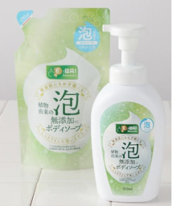 「E-WA! 植物由来の泡無添加ボディソープ」は、「無添加せっけん」と「肌へのやさしさ」にこだわって製造した。合成香料・着色料・保存料無添加の低刺激処方で製造しているため、敏感肌などの肌への悩みを抱えている人や肌のデリケートな子どもまで使用できる。きめ細かいもっちり泡、使用中の泡もちの良さ、高い洗浄力と素早い泡切れなど、泡にもこだわった。