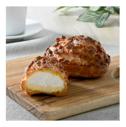 濃厚ですっきりとした味わいのホイップクリームとミルクカスタードクリーム、シュガーコーティングしたクランブルを包むことで、最後まで飽きることなく、クリームのおいしさを楽しめる商品。価格は313円。6月11日(火)から発売。
