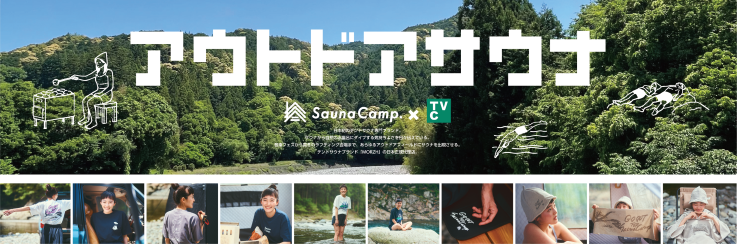 商品はTVC限定のSauna Camp.半袖Tシャツ1980円(本体価、以下同)とSauna Camp.サウナハット1980円、Sauna Camp.サウナポンチョ4980円、Sauna Camp.サウナマット1580円。サウナ初心者向でも気軽に買えるアイテムで、ウトドアサウナはもちろん、銭湯やサウナ施設などでも使用できる商品だ。