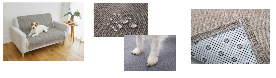 ④ 裏面防水加工で染み込みをガードし、万が一の粗相にも安心。