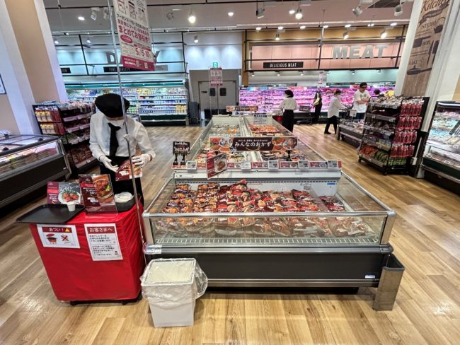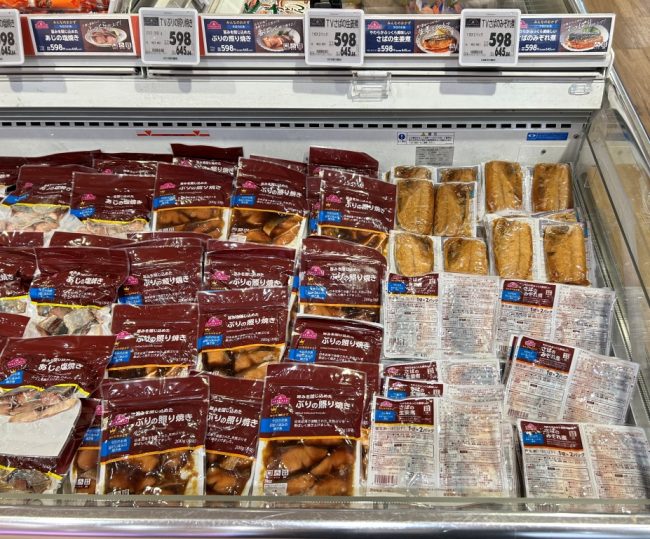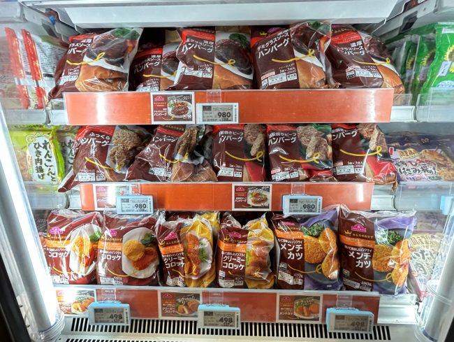 品揃えでは「焼いて美味しい ノンフライコロッケ(8個入り)」(税別498円、以下同)、「濃厚デミグラスハンバーグ(150g×3個)」(980円)、「やわらかふっくら美味しい さば味噌煮(1切×2パック)」(598円)など肉や魚などの主菜が中心だ。そして、容量はファミリー層を意識している。また、人気のハンバーグは「鉄板焼きビーフハンバーグ(130g×3個)」(980円)、「ふっくらハンバーグ(10個入り800g)」(980円)など3種類を揃える。