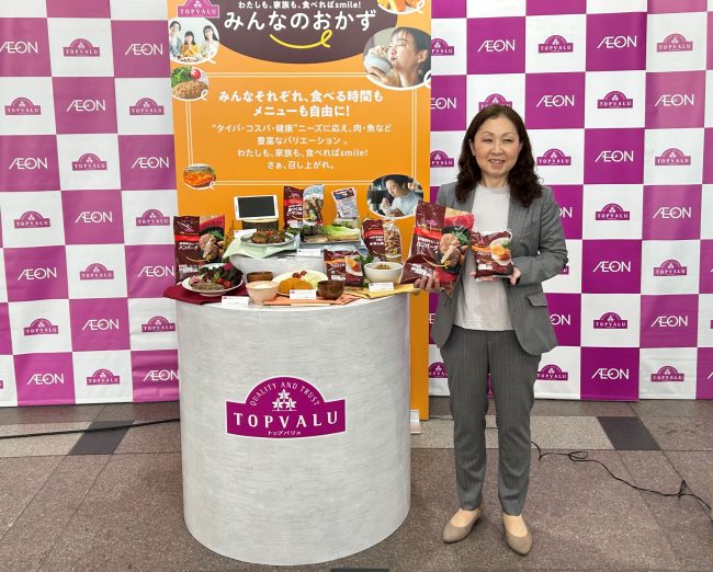 開発にあたったイオントップバリュ(株)の森真紀取締役ブランド&コミュニケーション本部長は「いまの主婦は忙しいために、手軽に冷凍食品を使うようになっている。また、一緒に生活しても、家族の生活時間帯がばらばらで個人で食事する機会が増加している。これを食のパーソナル化ととらえたことが開発のヒントになりました。あえて夕食のおかずになるような商品として、このシリーズを出した」