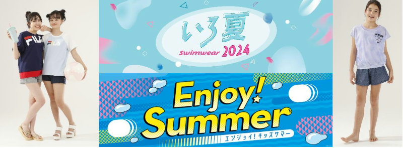 今年は、レディス・メンズは明るくアクティブな気分でいろんな夏を楽しむ「いろ夏 」、キッズは「Enjoy!Summer」をテーマに、様々な水着を品揃えて展開している。