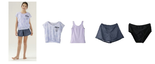 レディス売場では、ティーン向けTシャツ付きでタンクトップとビキニを組み合わせた「タンキニ」や、日焼け対策用にパーカーやレギンスなどがセットになった商品を、キッズ売場では、レディス同様のTシャツ付きタンキニや人気の柄サーフパンツを、メンズ売場ではおしゃれなサーフパンツなどを品揃える。このほか、キャンプや散歩など普段使い用としても着用できるラッシュガードなども展開する。