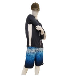 ●【メンズ】無地脇メッシュ切替ラッシュガード、CSサーフパンツリーフ柄