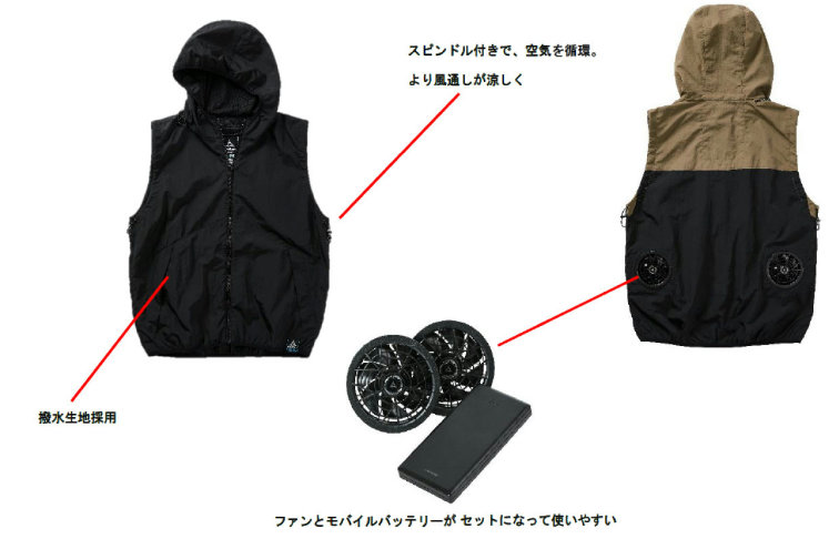 「ウィンドコア エントリーセット ベスト」は、限定生産で販売中。スピンドル付きで空気が循環するので風通しがさらに向上。ウェアとデバイスがセットのエントリーモデルで、購入しやすい価格での販売。サイズはM~3L、カラーはブルー、ブラウン、ブラックの3色。価格は9800円。