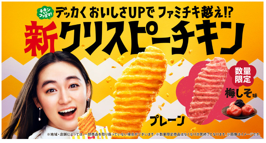 同時に新商品「クリスピーチキン 梅しそ味」165円を数量限定で発する。