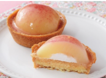 しっとりとした食感の桃風味のタルト生地に、ミルクホイップ、甘味と酸味のバランスの良い桃の果肉入りソースを重ね、その上から1/2個分の桃をのせた、夏にピッタリの爽やかな味わいのスイーツ。価格は319円(税込み、以下同じ)。