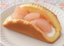 桃風味のレアチーズホイップ、桃の果肉入りソース、カットした桃を、ふんわりとした食感のオムレット生地ではさんだ。ホイップにはナチュラルチーズ入りのチーズペーストと濃縮チーズペーストを使用しており、チーズのほのかな酸味が桃の甘味を引き立てる。価格は329円。