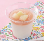 北海道産生クリームを使用したなめらかな食感の杏仁豆腐の上に、桃ソースをかけ、カットした桃をトッピングした。すっきりとした爽やかな味わいを楽しめる。価格は259円。