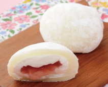 新潟県産羽二重粉を使用した餅生地で、桃ソース、クリームを包んだ。北海道産生クリームを使用したミルク感のあるクリームと、ほのかな酸味のある桃ソースの相性の良さが楽しめる。価格は171円。