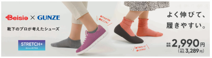 ベイシアnews|グンゼと共同開発「STRETCH+シューズ」7/31から販売