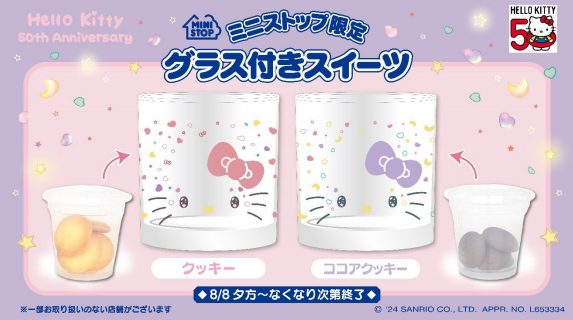 ミニストップ(株)(千葉市美浜区、藤本明裕社長)は、8月8日(木)から21日(水)の期間限定で(株)サンリオの人気キャラクター「ハローキティ」誕生50周年記念のグラス付きスイーツを国内店舗(6月末時点1829店)で発売している。