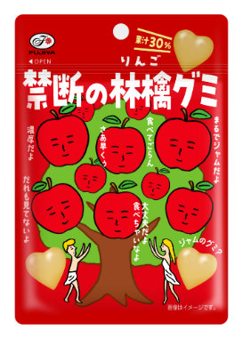 「不二家 禁断の林檎グミ」は、りんごジャムをグミに練りこみ、りんごの旨みが凝縮された濃厚な味わいで、酸味を抑えて甘めに仕上げたグミ。価格は150円。