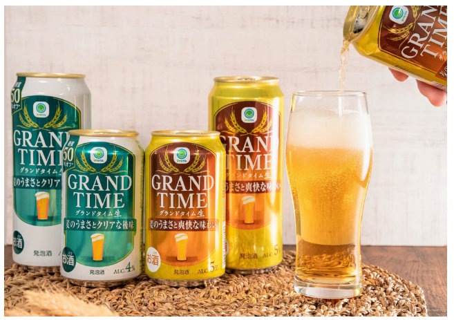 (株)ファミリーマート(東京都港区、細見研介社長)は、プライベートブランド「ファミマル」の「グランドタイム」を「グランドタイム生」「グランドタイム生 糖質オフ」とリニューアルして、9月3日(火)から全国のファミリーマートの酒取扱店約1万5800店で発売する。