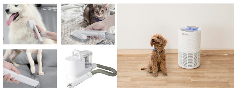 近年、ペットと暮らす人が増加していることから、新たにペットと⼀緒に暮らす空間を快適に過ごすことができる製品の開発に両社で取り組んだ。お客の困りごとの1つであるペットの「抜け⽑」に着⽬し、⽑の⼿⼊れを簡単に⾏える掃除機⼀体型の「グルーミングセット」のほか、抜け⽑が⽬詰まりして使いづらいという不満点を解消した、⼤きな吸気⼝で⽬詰まりしづらい「空気清浄機」を開発した。
