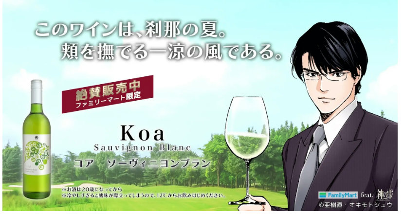 また発売に合わせ、人気ワイン漫画「神の雫」のコラボレーション動画を、全国のファミリーマート約1万店の「FamilyMartVision」で放映する。