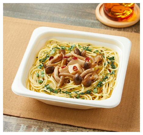 「長野県産きのこと信州菜の和風ペペロンチーノ」は、長野県産「ぶなしめじ」と「エリンギ」を使用し、白だしと濃い口しょうゆで味付けをした和風仕立てのペペロンチーノ。さらに信州菜をトッピングした、信州尽くしのパスタ。価格は462円。発売地域は長野県・山梨県。