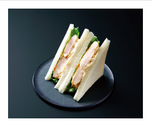 「ガーリックバターチキンサンド」は、にんにく醤油に漬け込んで焼いた鶏もも肉に、オニオン・ガーリック・ペッパーが効いた背徳なマヨソース入りポテトサラダと、ガーリックバターソースをあわせたサンドイッチ。本体価格は366円(以下同)。