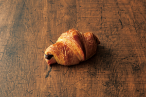 「お店で焼いたチョコクロワッサン」は176円。ミルクチョコレートをあわせたサクッと食感のクロワッサン。