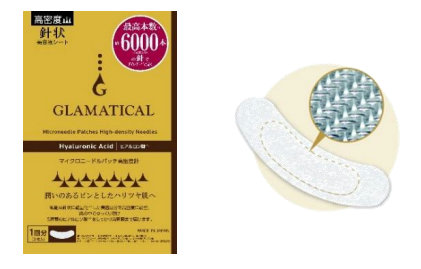 「マイクロニードルパッチ 高密度針」は、マイクロニードルの配列を従来の四角型からダイヤ型配列にすることで高密度に成型。最高本数約6000本の針(2枚あたり)で、5種類のヒアルロン酸をダイレクトに角質層まで届ける。2枚入りで本体価格1500円(以下同)。