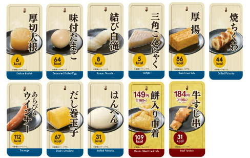 参考までに昨2023年度の売上ランキングトップ5は、1位が厚切大根、2位が味付たまご、3位結び白滝、4位厚揚、5位三角こんにゃく だった。