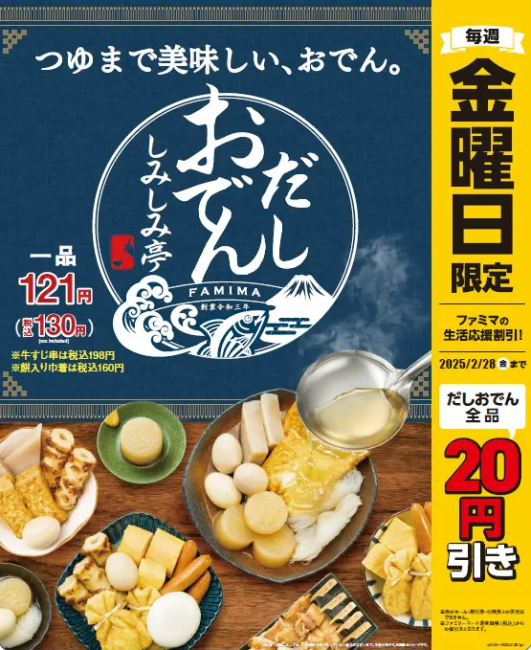なお、9月24日(火)〜2025年2月28日(金)までの「だしおでん しみしみ亭」発売期間中、毎週金曜日に全品20円引きセールを開催する。