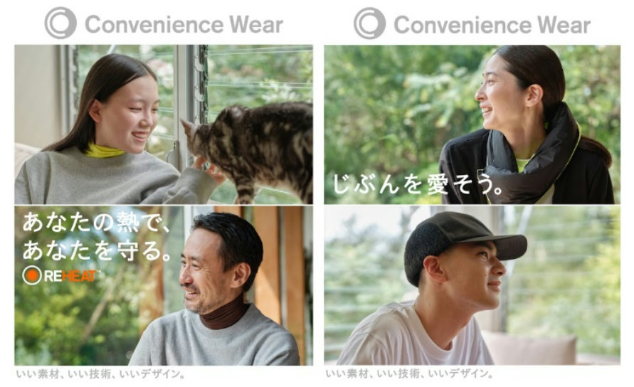 その他、機能性インナー「REHEAT」はリニューアルして新登場。「紳士 発熱・保温ボディウェア」「婦人 発熱・保温ボディウェア」1355円、「婦人 発熱・保温タイツ」1173円、「軽量・保温マフラー」1817円、「耳当て帽子」1817円も順次登場する。