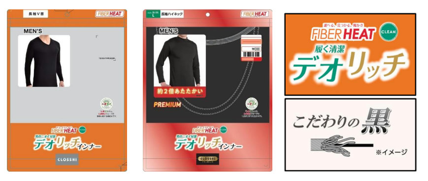 「FIBER HEAT PREMIUM デオリッチインナー」は、裏起毛でデオリッチインナーの約2倍の暖かさが特長だ。LLまでが価格は1089円、3L~5Lが1199円。