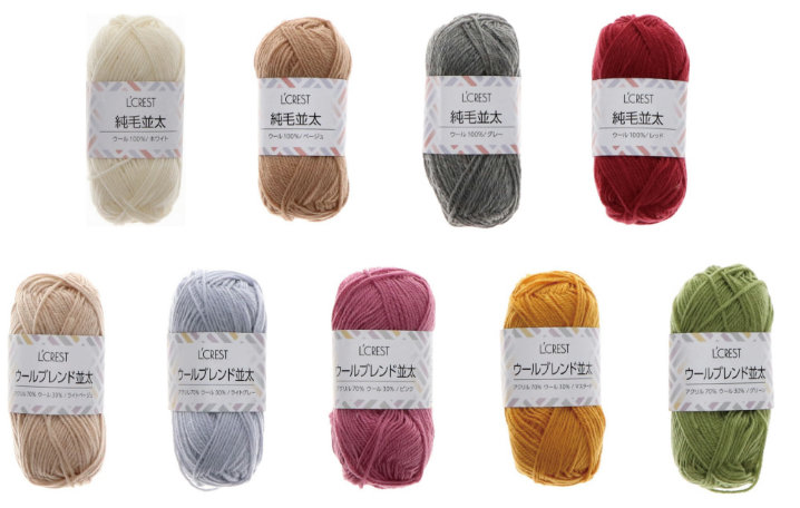 近年、室内でできる趣味として編み物の注目度が高まっている。家で過ごす時間が多くなる冬に向けて、オーストラリア産のウールを100%使用した純毛毛糸を4種、30%使用したウールブレンドを13種、さらに同シリーズの毛糸としてアクリル毛糸3種を合わせた全20アイテムで登場する。価格はすべて110円(税込み)。
