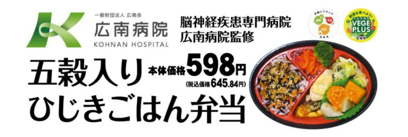 イオン東北(株)(秋田県秋田市、辻雅信社長)と10月11日(金)から10月15日(火)の期間、脳神経疾患専門病院 広南病院が監修した「五穀入りひじきごはん弁当」本体価格598円を、宮城県内の「イオン」「イオンスタイル」合計12店舗で販売する。