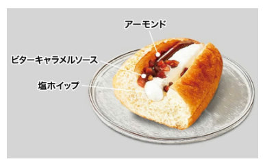 ファミリーマートで人気のしっとりもっちり食感が特長の生フランスパンの生地を使用。練乳を炊き上げて作ったビターなキャラメルソースと塩をきかせたミルクホイップを別にしてサンドすることで口の中で塩キャラメルが味わえる。