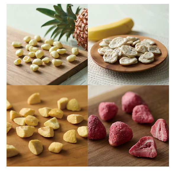発売する不揃いチョコシリーズは4種。パイナップル、バナナチップにヨーグルト味のチョコレートをかけた「不揃い パイナップルヨーグルトチョコ」39gと「不揃い バナナチップヨーグルトチョコ」37gは、税込み価格で250円(以下同)。10月11日(金)から発売する。
