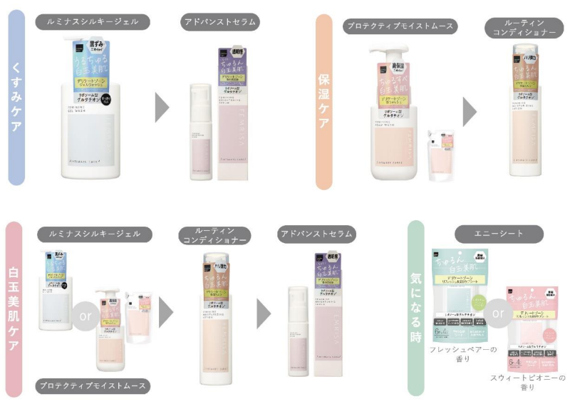 「FEMRISA(フェムリサ)」とは、「FEM(女性)」と「RISA(笑う)」を掛け合わせた「女性の気持ちを高め笑顔にする」という意味合いの造語。フェムケア商品が日常生活に自然に溶け込み、女性の笑顔や活躍を支えたいという願いが込められている。