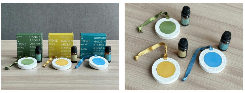 付属のアロマオイルを適量たらし、吊り下げて香りを楽しむ。アロマオイルの容量は10mlで、価格は300円。