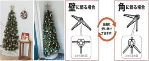 設置場所に合わせて、ツリーの脚を組み替えるだけで壁でも角でもピッタリ置ける。北欧風デザインを取り入れ、リアルな質感を追求した。カラーはグリーン、価格は 5990円(税込み、以下同じ)。