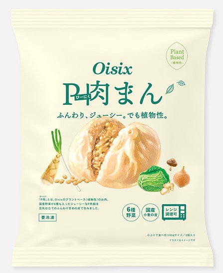 Oisixでは2022年12月からプラントベースミート(P肉)使用のミールキットや餃子、ミートボールなどをシリーズ展開。Oisix会員向けに販売してきた。とくに「P肉まん」はリピートが相次ぐヒット商品となり、累計販売個数は5万個(2024年9月末時点)を突破。健康面や食後のヘルシー感などから高い支持を得た。