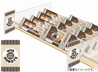 ブランド名は、小腹がすいた時の「隙間」を満たす手軽さや、一人ひとりの生活に寄り添った身近な存在を表す言葉として、「with DONUTS」とネーミングされた。また新パッケージは、全体を茶色系のモカカラーで統一し、カフェの雰囲気を想起する親しみや暖かみのあるデザインへ変更する。