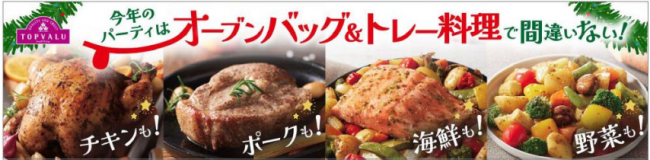イオン(株)(千葉市美浜区、吉田昭夫社長)は11月20日(水)から順次、クリスマスなどのパーティ需要に向けた本格的なオーブン調理対応の「オーブンバッグ&トレー」商品をPB「トップバリュ」から発売する。全国のイオン、イオンスタイル、マックスバリュなど約1880店舗で販売する。