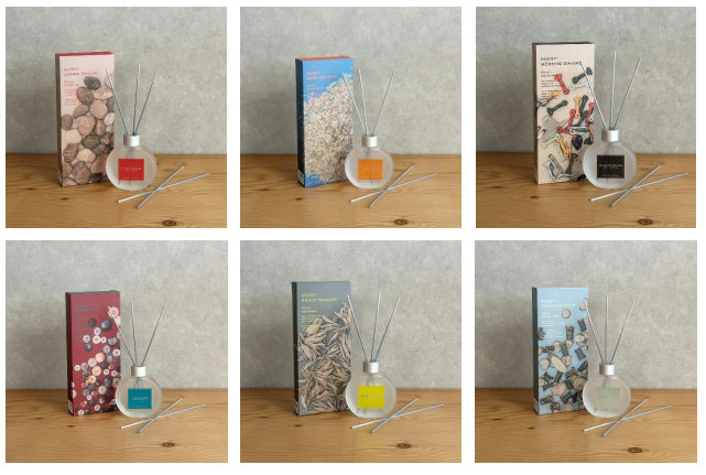 新しいフレグランスシリーズは、初めての取り扱いとなる無水タイプのディフューザーとなる。6種の香りで、アロマディフューザーとリフィルの全12種を展開する。