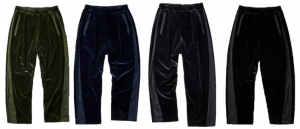 ずっと触れていたくなるような、なめらかな風合いのベロア生地。トレンド感のあるフレアシルエットと切り替え生地のサイドラインがコーデのアクセント。カラーはダークグリーン・ネイビー・チャコール・ブラック、サイズはM・L、価格は1900円。