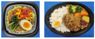 コラボ弁当は、東京聖栄大学在学の管理栄養学科の学生が「量目」と「カロリー」別に考案した2種類。活動量の少ない女性・シニア・体重が気になる人向けの「やみつき!彩り野菜のルーロー飯」と一般成人・成長期・活動量が多い人向けの「ハヤシソースの鶏ハンバーグ弁当」。価格はともに699円(本体価格)。